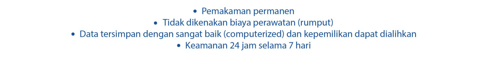 Komunikasi, penjelasan dan advise yang kami terima sangat melegakan dan membantu, sehinga semua ibadah - prosesi berjalan lancar, megah dan indah. Semua keluarga merasa bersyukur bisa makamkan ditempat strategis, harga dan service yang sangat baik dan cepat.